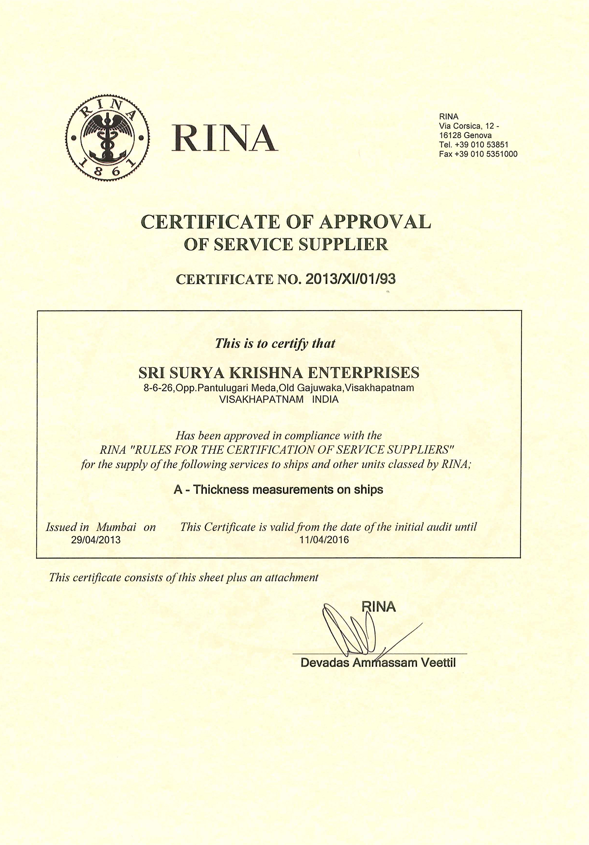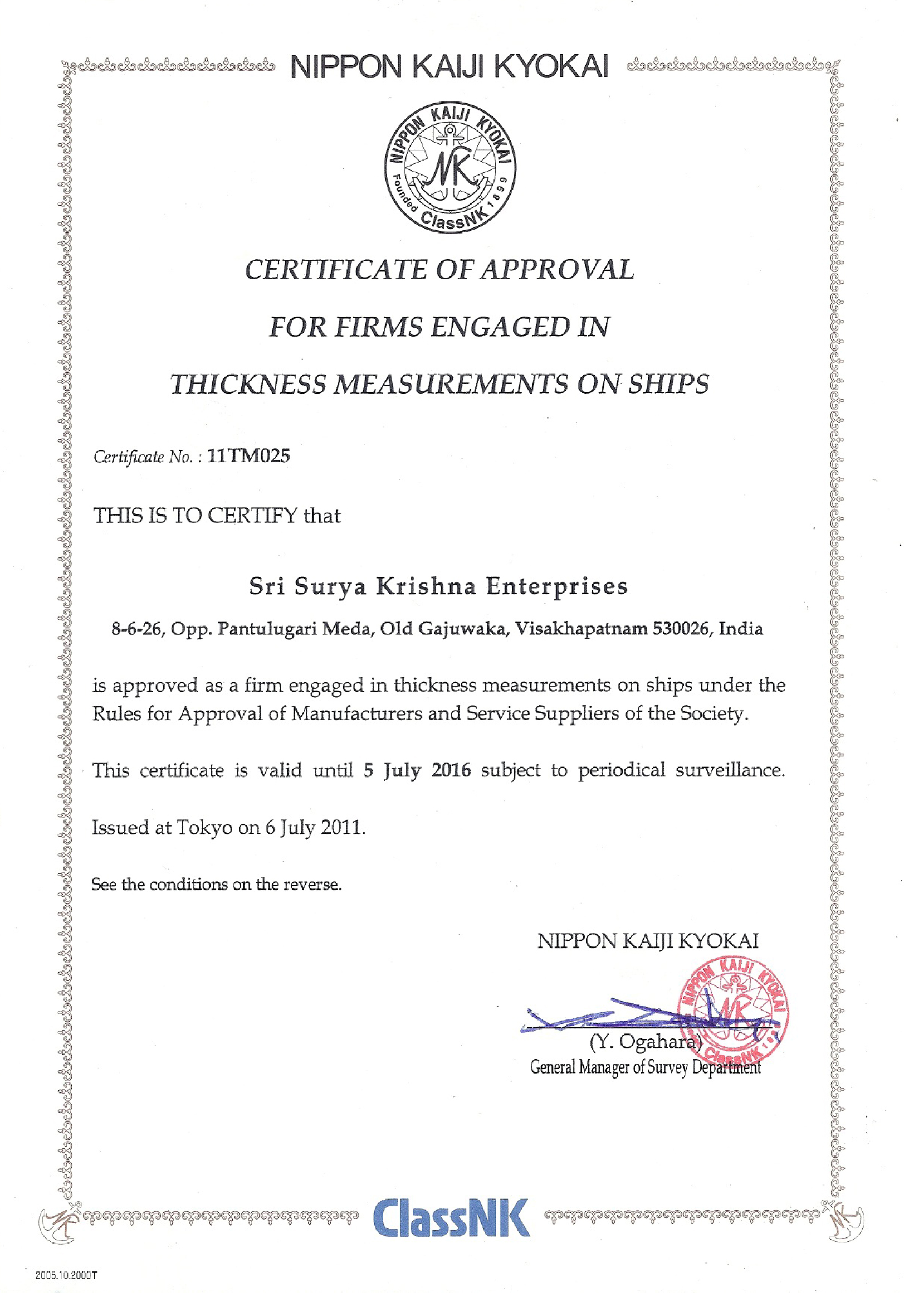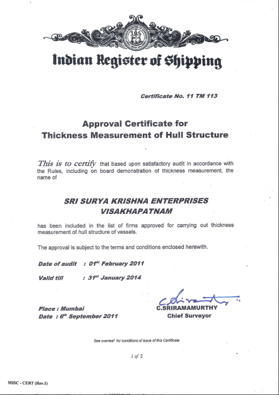 Approved By : DNV, ABS, LR, NKK, BV, IRS & RINA