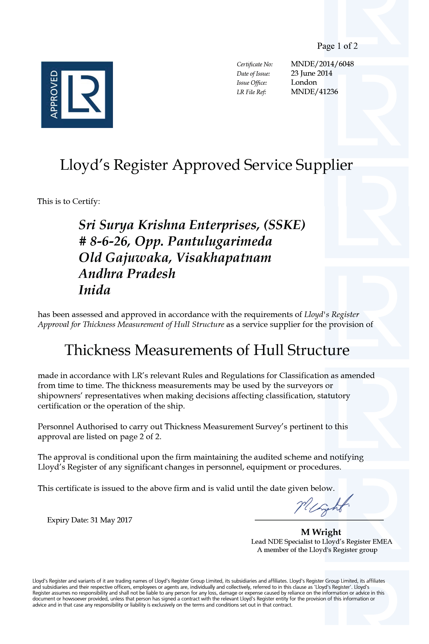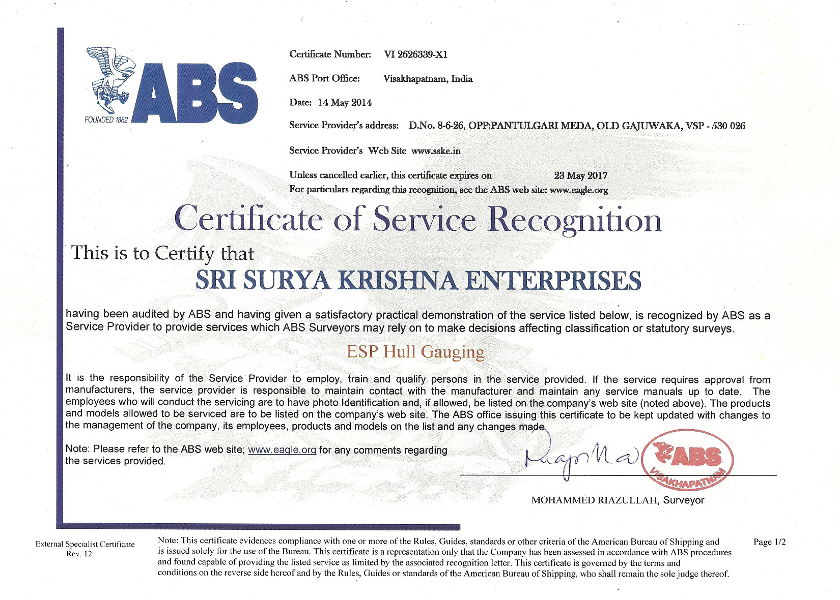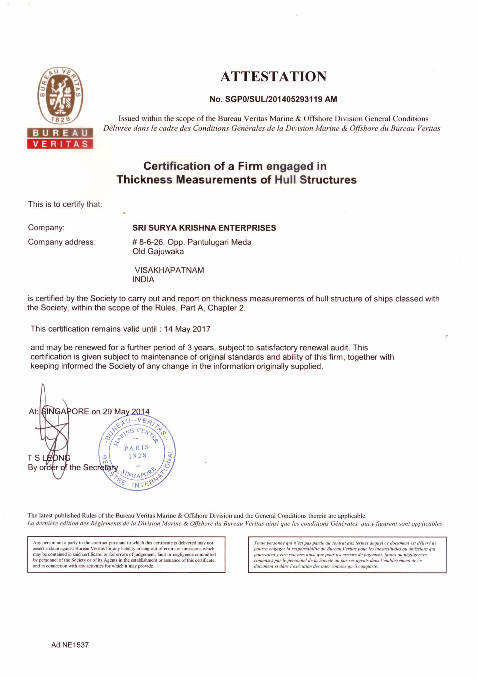 Approved By : DNV, ABS, LR, NKK, BV, IRS & RINA